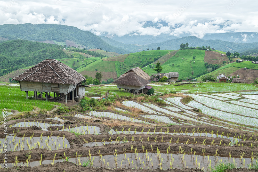 Beautiful view house and terraced rice paddy field in Chiangmai, Thailand.