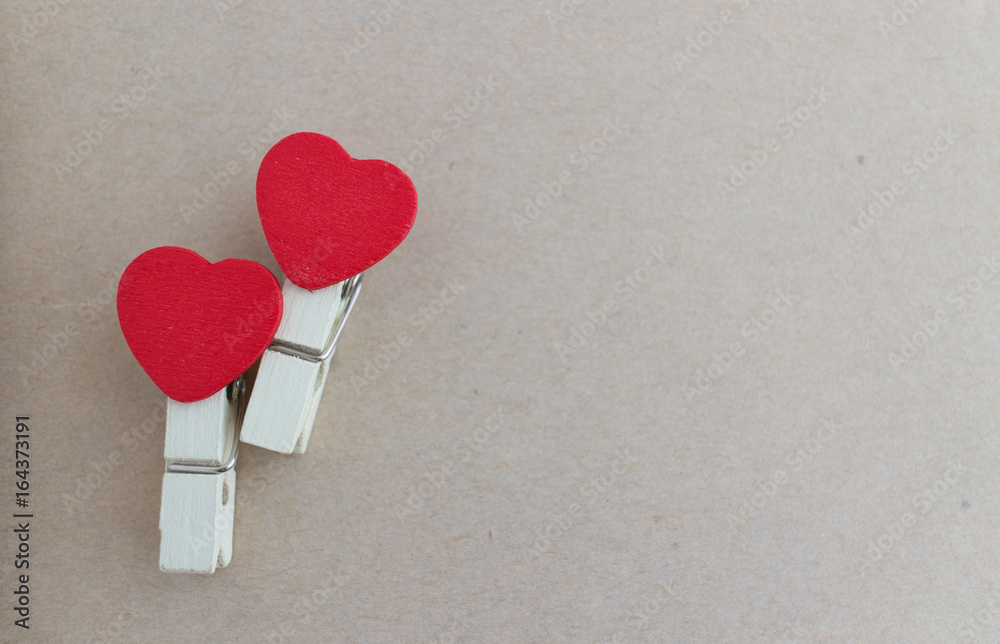 wooden clothespin with heart shape design and brown paper sheet for valentine concept