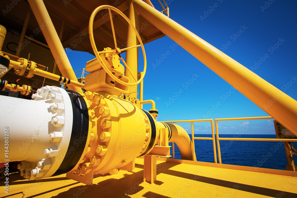 Manual operate ball valve at offshore oil and gas central processing platform, manual valve