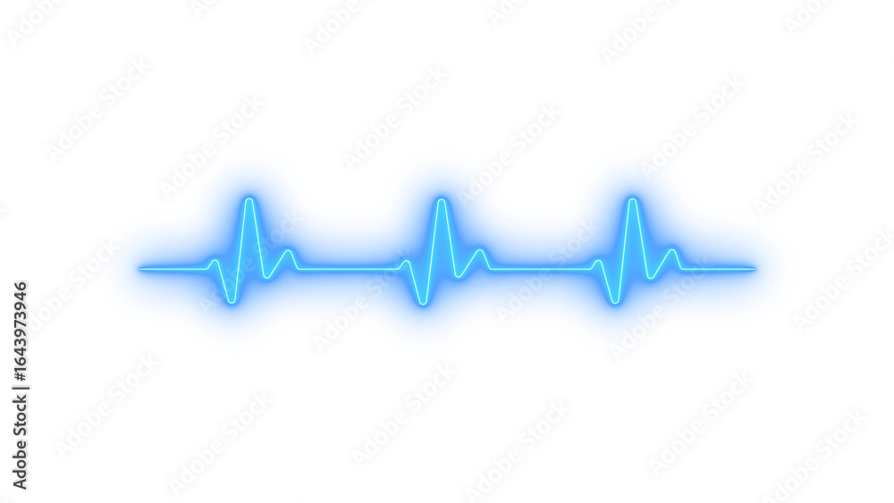 Glowing blue neon heart rate pulse line on transparent background representing medical monitoring, vital signs, heartbeat activity, health technology, cardiology diagnostics and emergency care screen