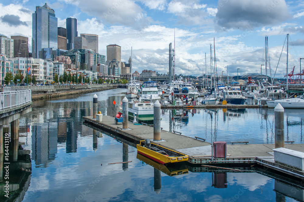 Seattle Waterfront Harbor on a Cloudy Autumn Day