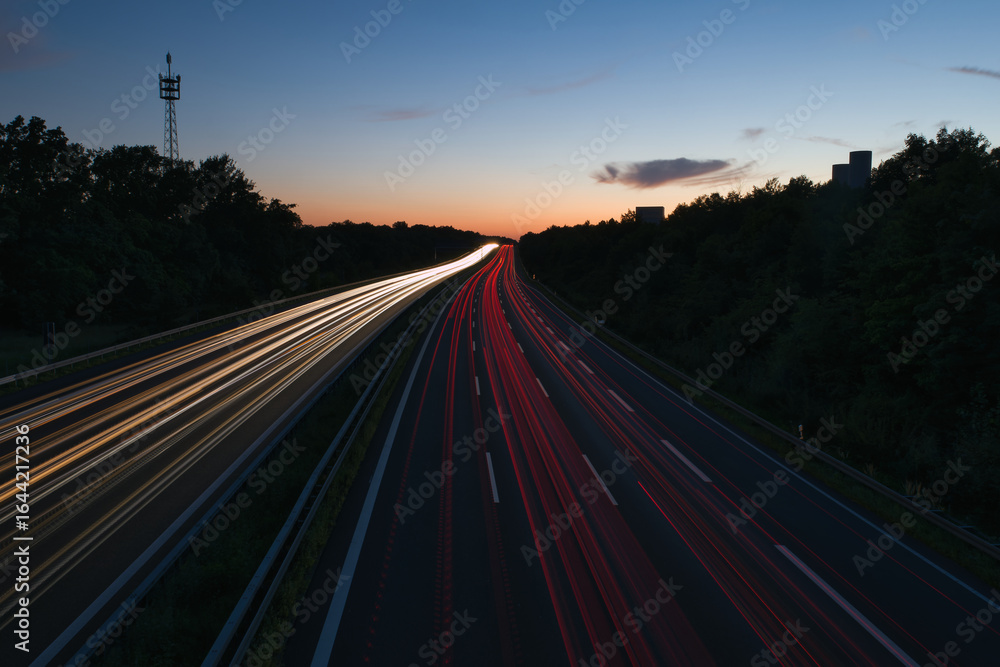 Langzeitbelichtung - Autobahn - Strasse - Traffic - Travel - Background - Line - Ecology - Highway - Long Exposure - Motorway - Night Traffic - Light Trails - Vacation - Sunset - High quality photo