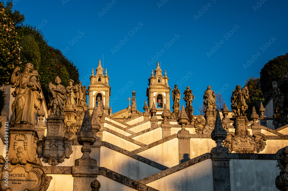 Stairs leading up to Bom Jesus do Monte taken during the golden hour in Braga, Portugal