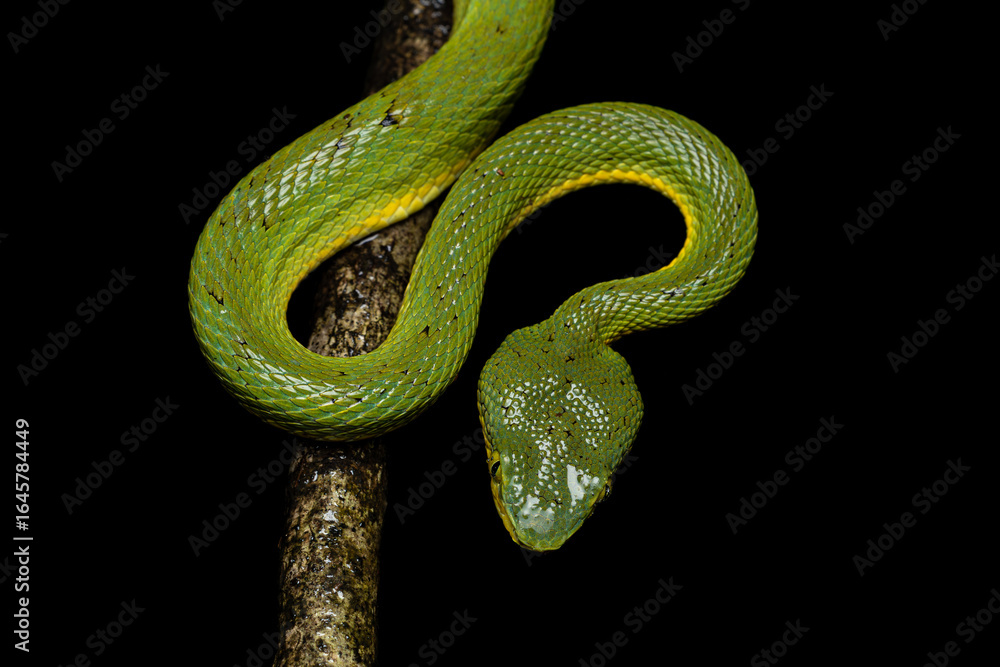 Closeup, macro shot of Bamboo pit viper, Snake, Matheran, Western ghats, India