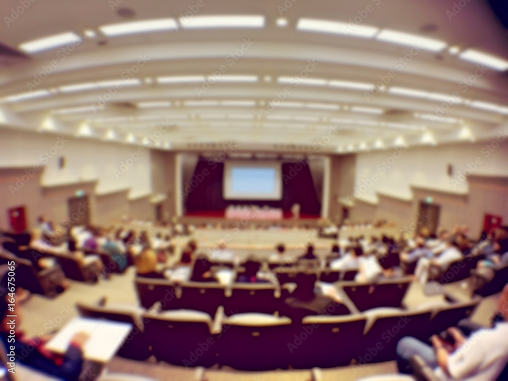 blurred image of Business Conference and Presentation. People Meeting Conference Seminar, Audience at the conference hall. - interior of a conference hall, warm & vintage tone photo.