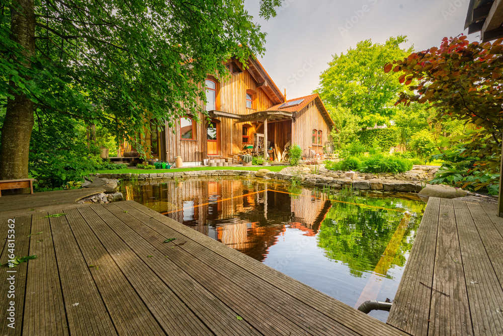 Traumhaftes Holzhaus mit natürlich gestalteten Garten