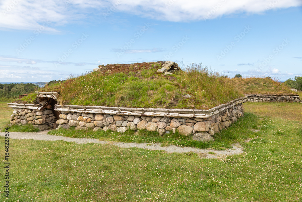 Ancient Sod Roofed Iron Age Farm with Rock Walls, Embedded in the Hillside in Stavanger, Norway