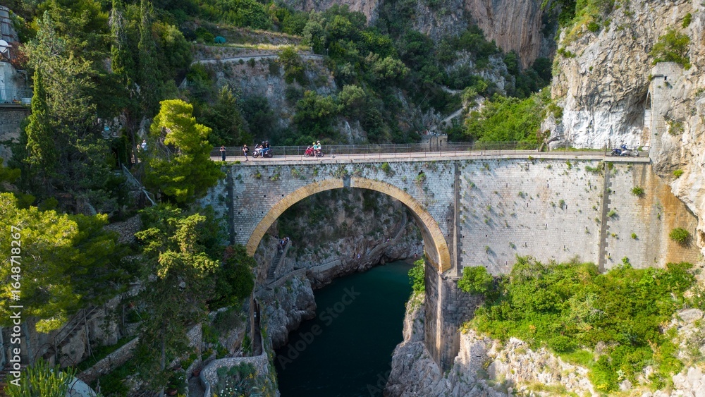 Aerial View of Furore Bridge over Hidden Fjord on Amalfi Coast