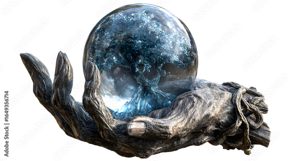 Crystal Orb with Tree of Life (3d rendered), isolated on transparent background
