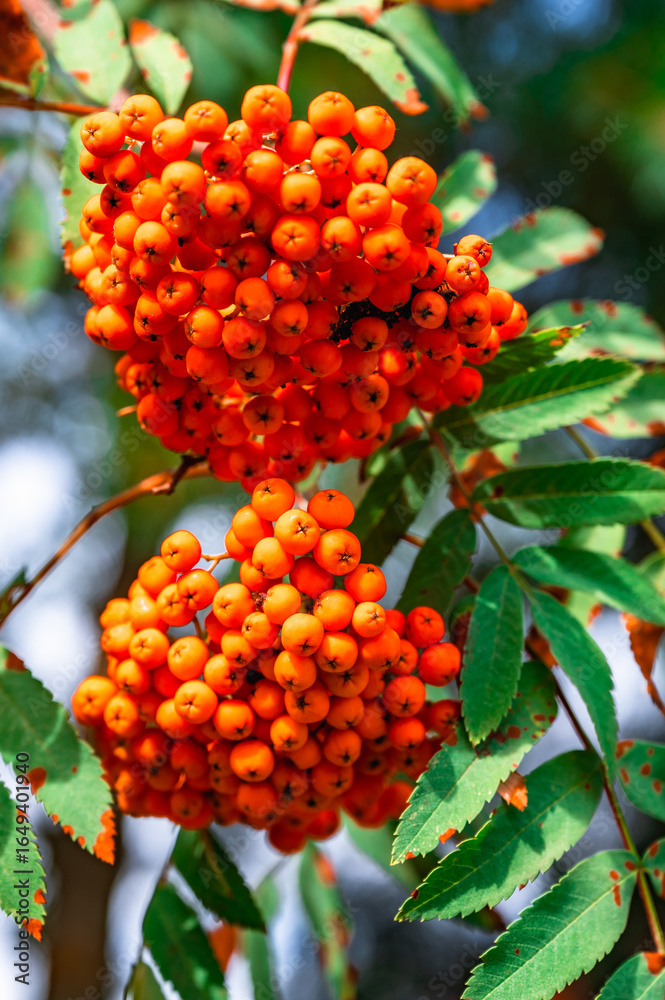 Vibrant Rowan Berry Cluster Hanging from Branch