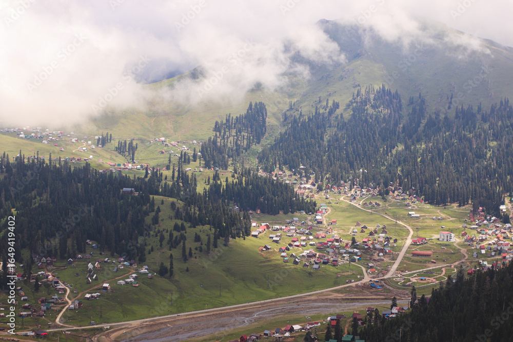 Highland village Bakhmaro under the clouds, Guria, Georgia