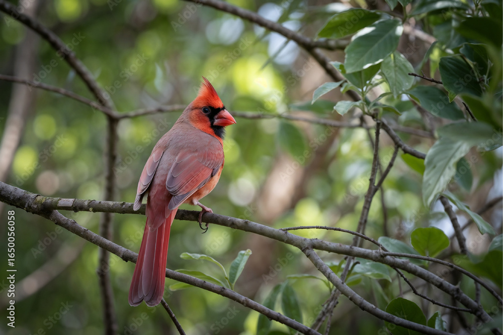 Northern Cardinal on Branch: Vibrant Red Bird in Natural Habitat