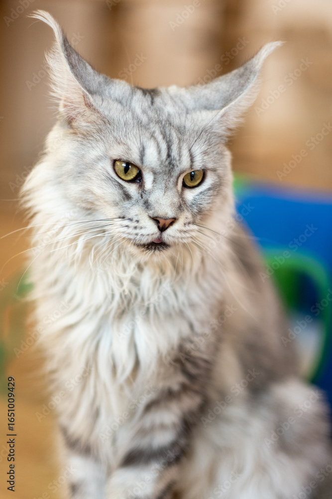 Close-Up of Maine Coon Cat with Close-Up of Maine Coon Cat with Striking Yellow Eyes