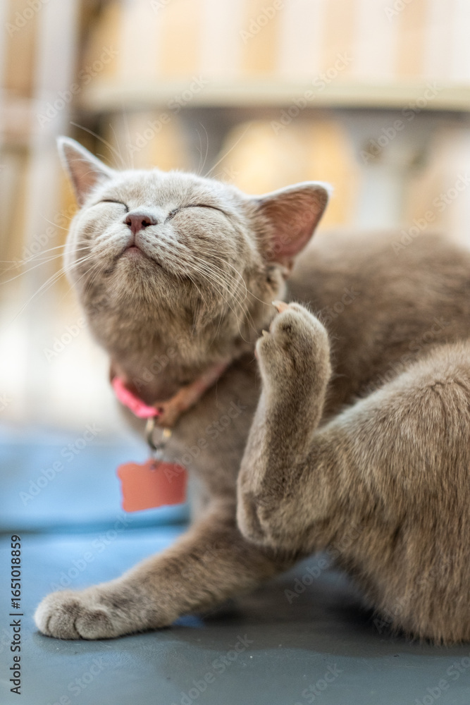 Playful Cat Enjoying a Scratch in a Cozy Setting