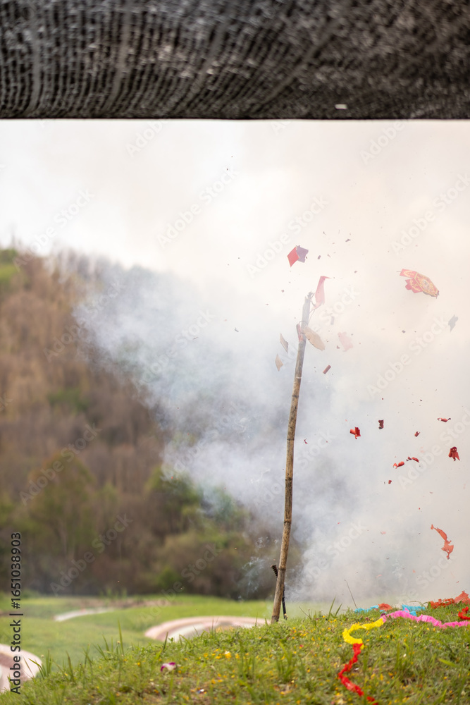 Colorful Smoke and Confetti Explosion at Outdoor Celebration