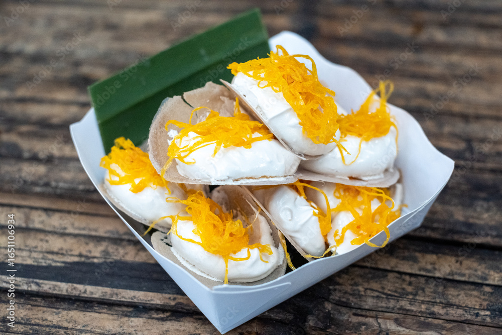 Delicious Thai Dessert with Coconut Cream and Golden Threads