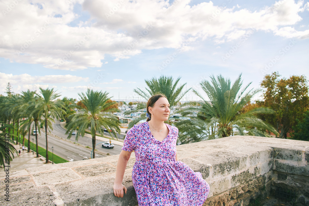 Outdoor portrait of happy mature woman enjoying nice day in Mallorca, Spain