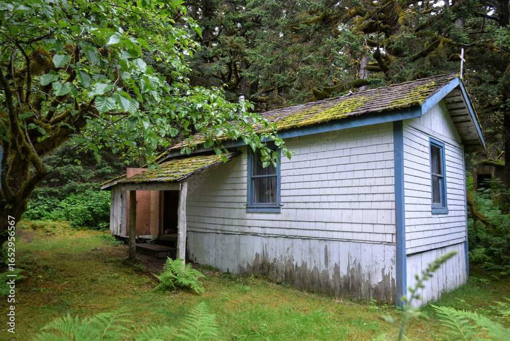 Kodiak, Alaska - August 9 2022: A little orthodox home located on Spruce island