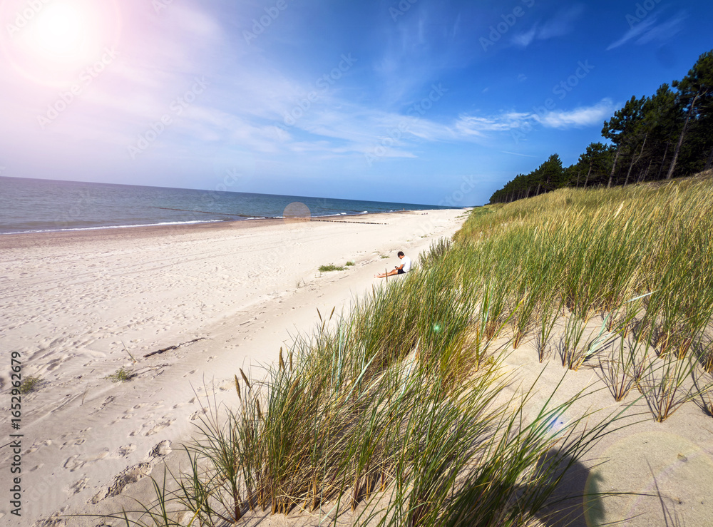 Pusta nadmorska plaza, bez ludzi, lato nad morzem, urlop, wakacje.