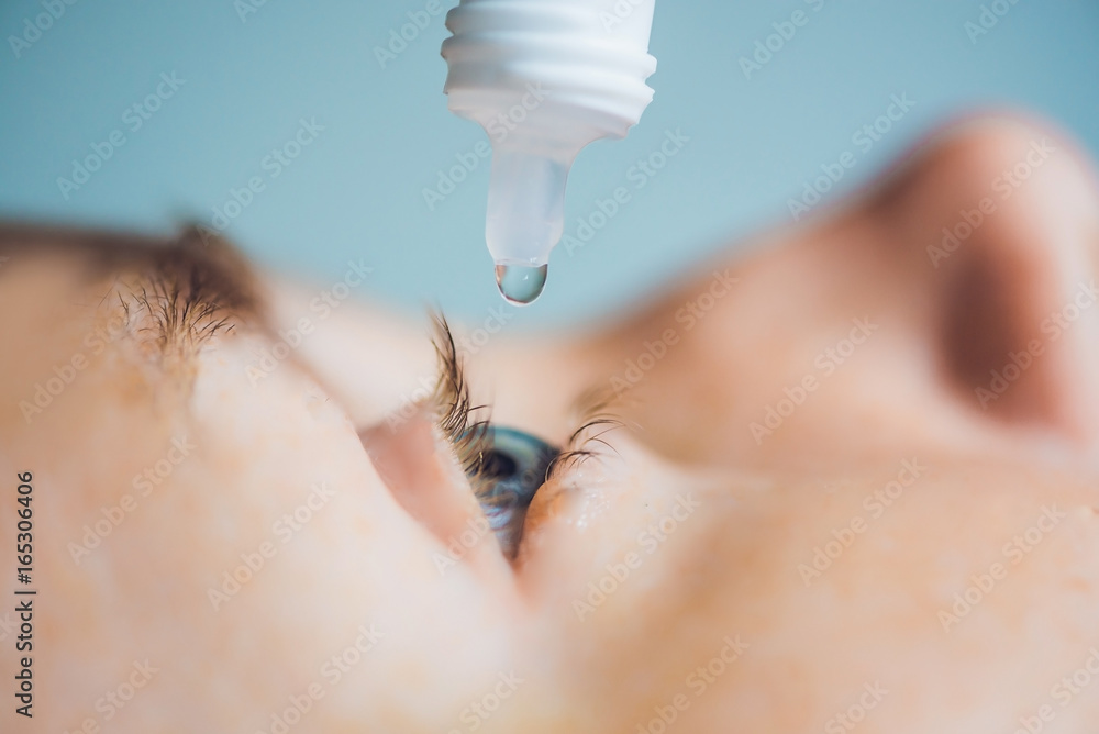 Closeup of eyedropper putting liquid into open eye