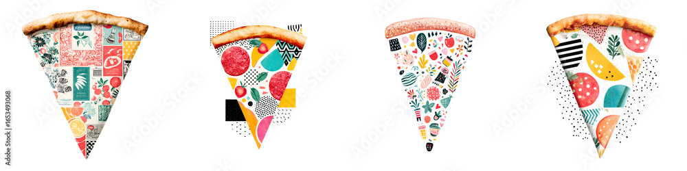 Abstract Pizza Slice Collection: Four Creative and Colorful Graphic Slices on White