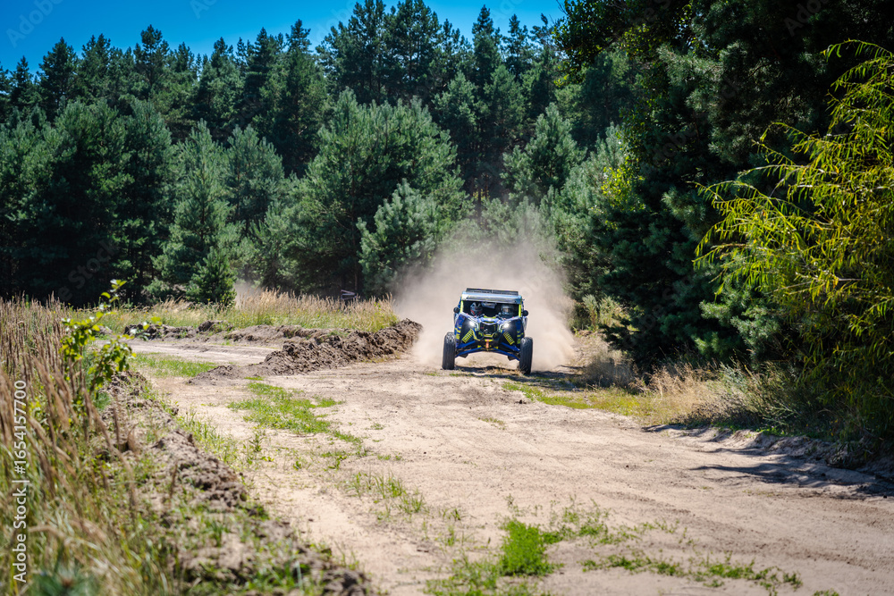 Outdoor activities UTV buggy on dusty track. 4x4, extreme, adrenalin
