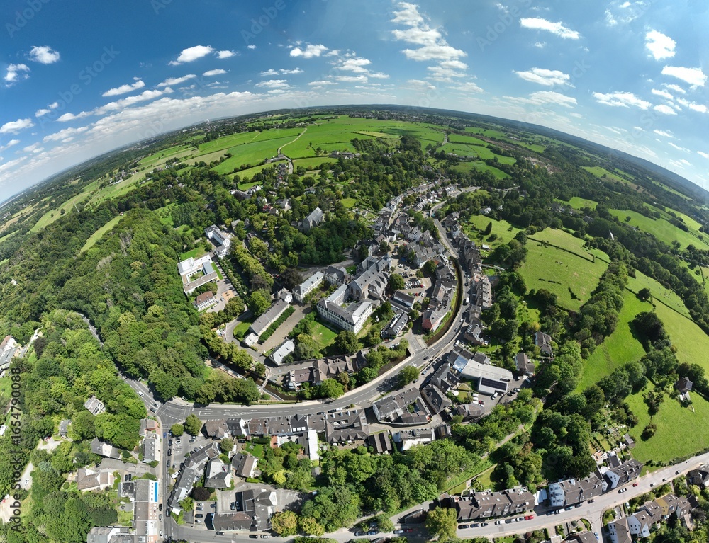 Hochauflösende Panoramabilder und 360-Grad-Luftaufnahmen von Kornelimünster bei Aachen. Zu sehen sind Reichsabtei, Bergkirche, Benediktinerabtei, Probsteikirche St. Cornelius, Inda Gymnasium