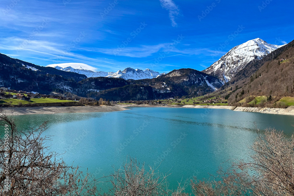 Scenic Alpine Lake with Snow-Covered Mountains - Lungern, Switzerland