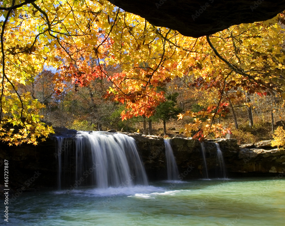 Autumn surrounds Falling Water Falls with fall colors, Ozark National Forest, Arkansas