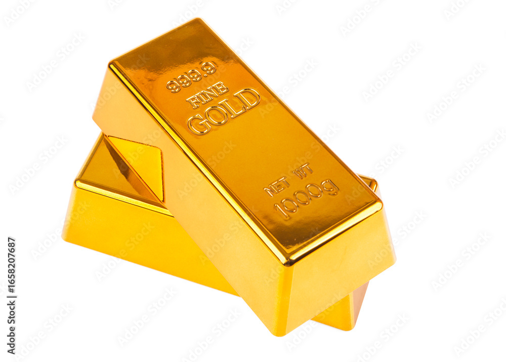 Gold bullion isolated on white background. Golden ingot with clipping path