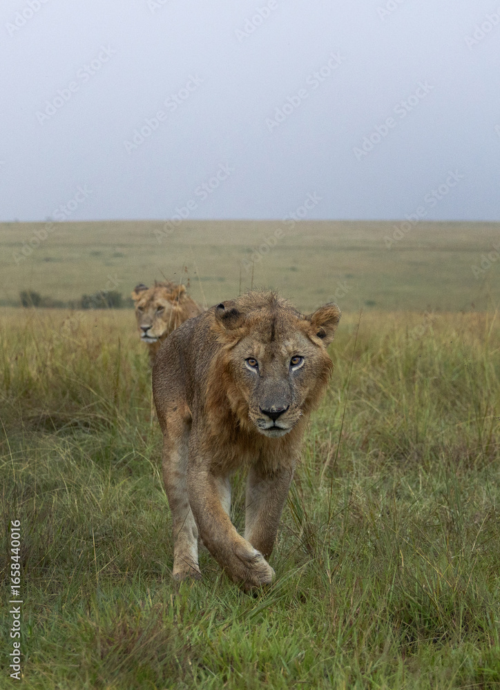Portrait of a male lion close to the vehicle, Masai Mara, Kenya