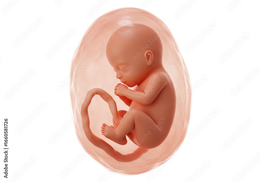 Isolated Medically Accurate Illustration of a Human Fetus in the Womb