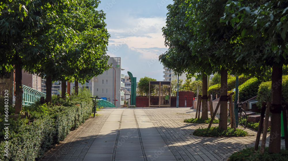 樹木と広い歩道