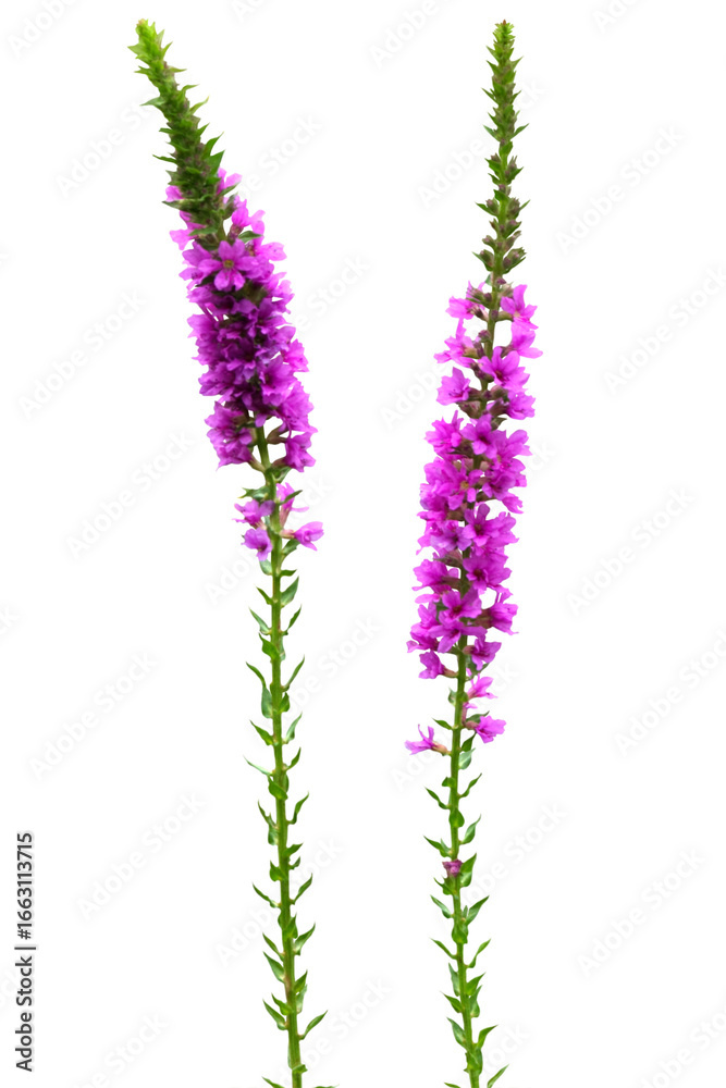 Close-up photo of a blooming purple loosestrife inflorescence isolated on a png file with transparent background.