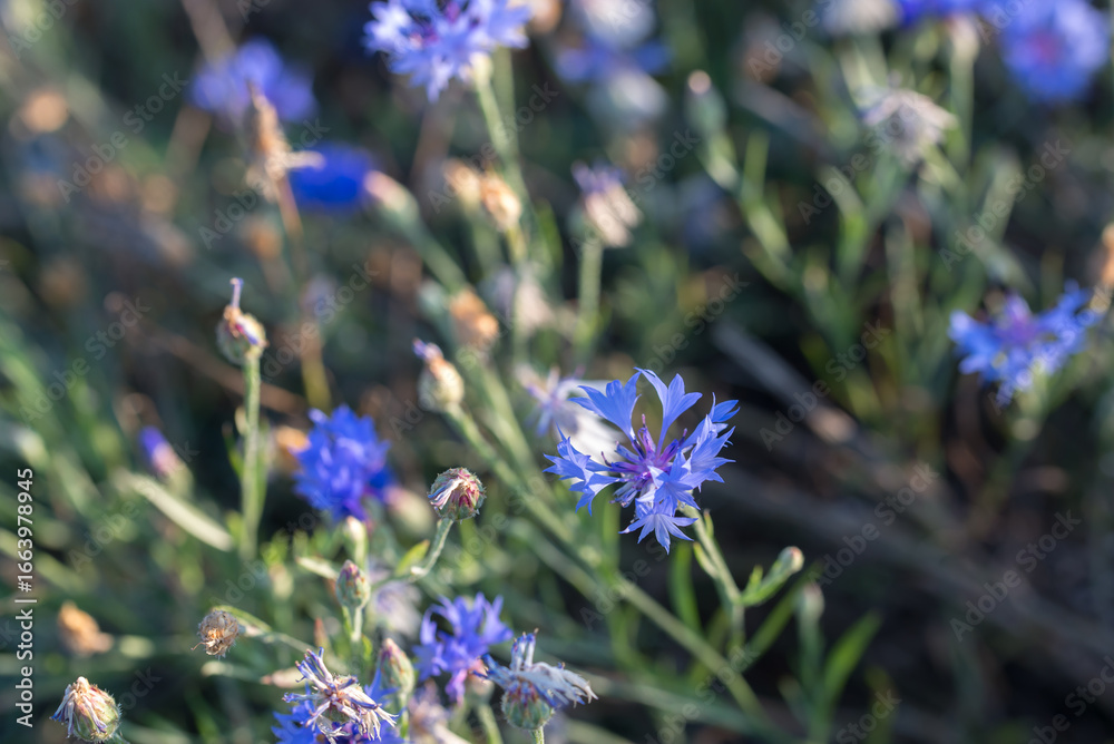 cornflower, Centaurea cyanus blue flowers closeup selective focus