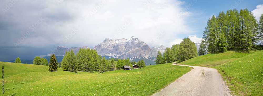 hike on the expansive Pralongia plateau, dolomites alps south tyrol