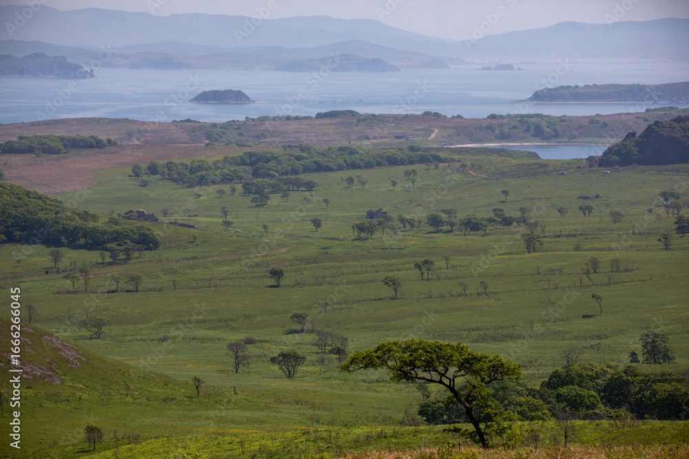 Krabbe Peninsula in summer. Khasansky District of Primorsky Krai. Nature of the Far East. Sea of Japan.