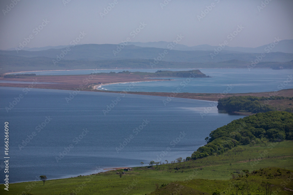 Krabbe Peninsula in summer. Khasansky District of Primorsky Krai. Nature of the Far East. Sea of Japan.