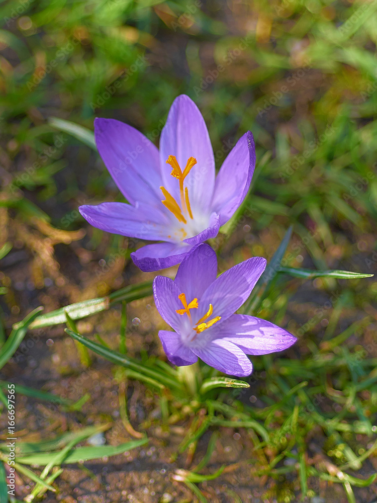 Macro Close-up shot of Crocuses in the WIld (Crocus ligusticus)