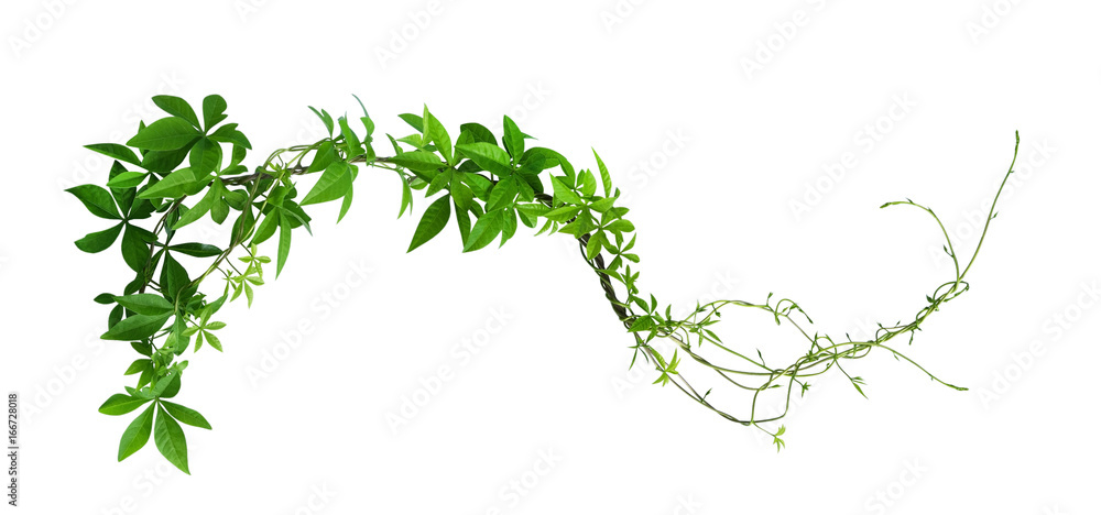 Wild morning glory leaves jungle vines isolated on white background, clipping path included