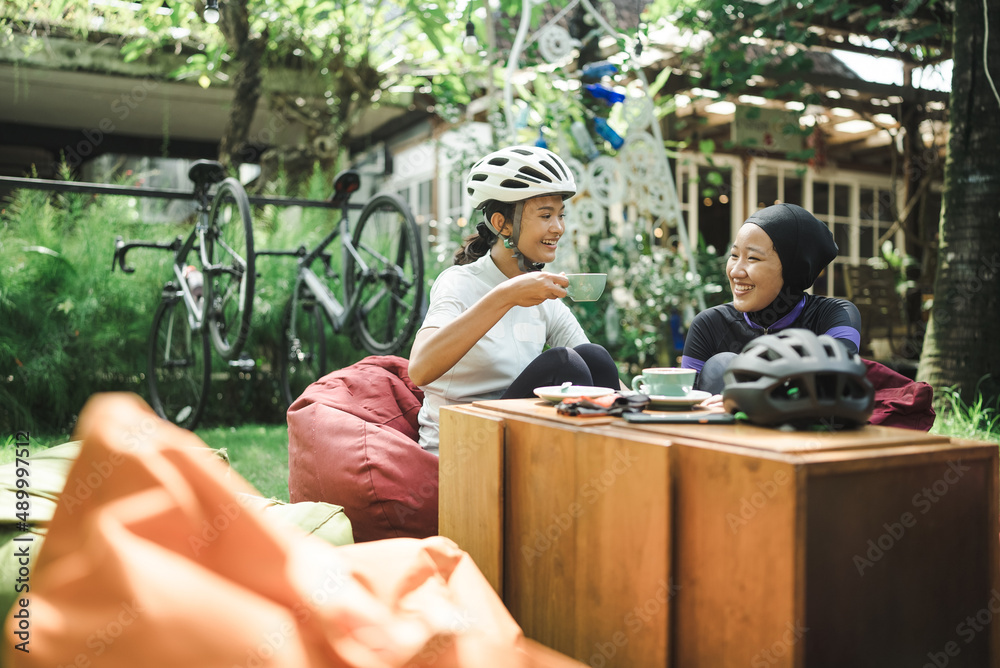 woman riding ahead on mountain bike in the rainforest adventure