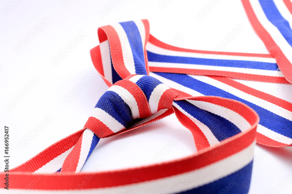 Ribbon neckties in colors of Thai flag isolated on white background.