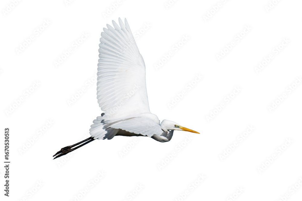 Great egret (Ardea alba), common egret, large egret, great white egret or great white heron isolated, png with no background.