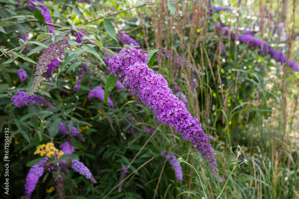 Vibrant Purple Butterfly Bush Flowers Blooming in Summer Garden