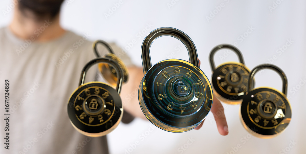 Cybersecurity concept. Combination locks, data protection, digital safety.