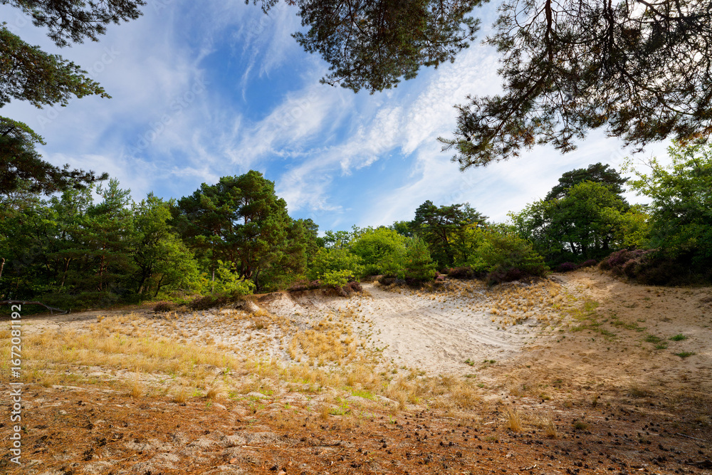 Forest, sand and hills in the French Gâtinais Regional Nature Park. Villeneuve-sur-Auvers village