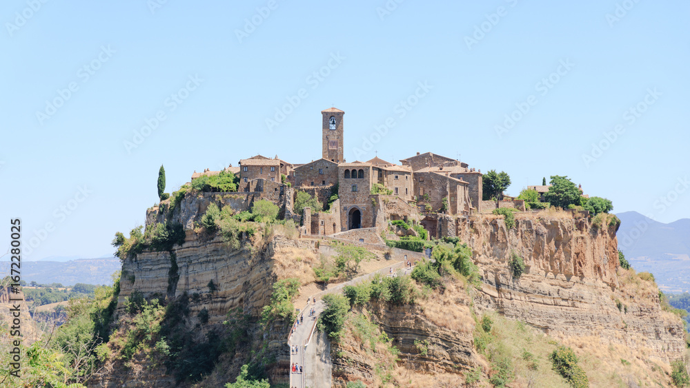 Civita di Bagnoregio, Italy. Cliffside View of Old Stone Town Wallpaper