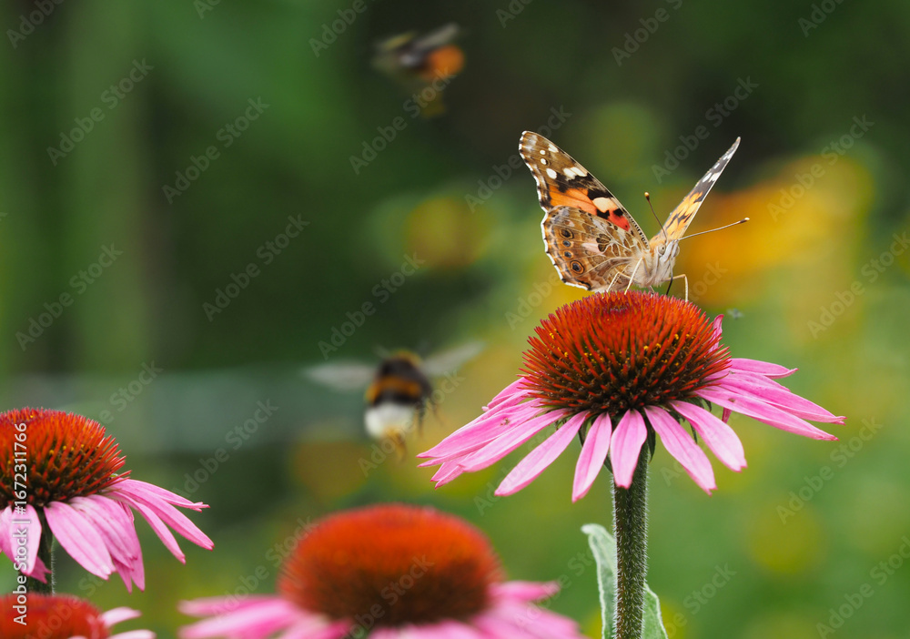 Distelfalter saugt Nektar auf einem rotblühenden Sonnenhut
