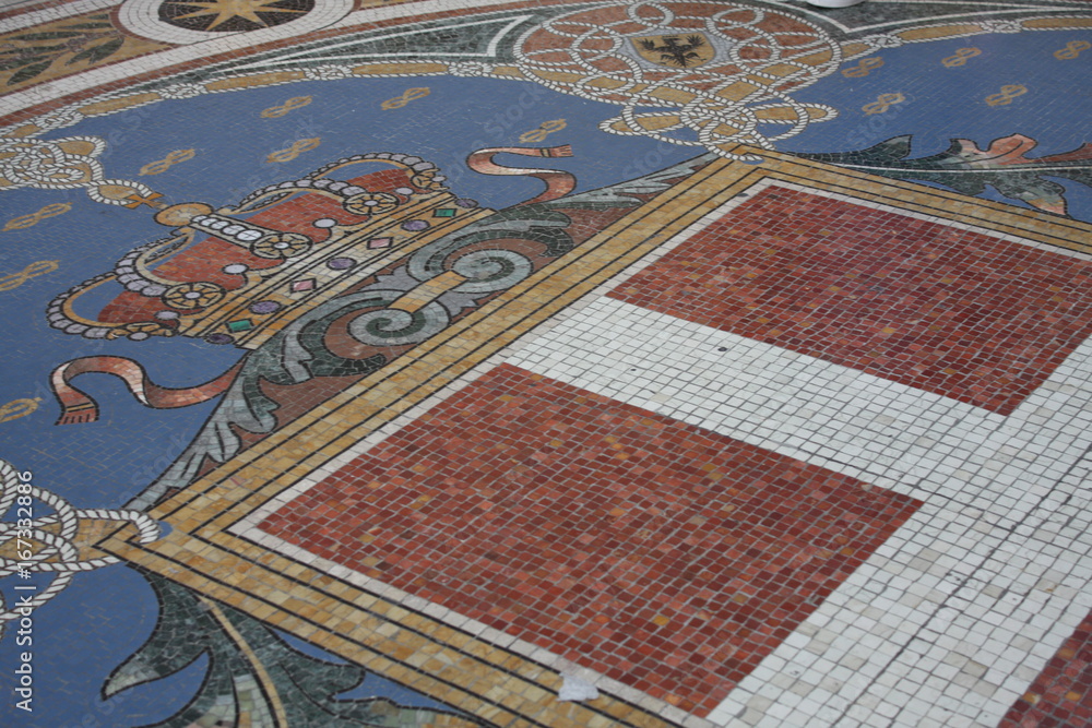 Mosaic on the floor of Galleria Vittorio Emanuele depicting Milan's coat of arms, Italy