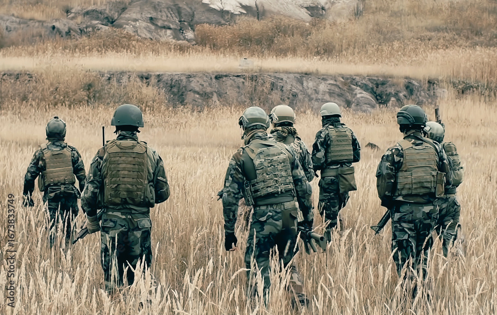 Ukraine-8 Jun 2025-Armed soldier in camouflage with weapon shows special signal.Young military man soldier holding gun, wearing special services uniform, stand in smoky space. defend concept.